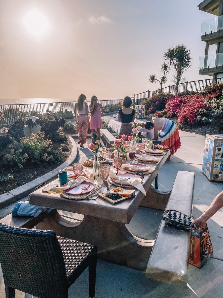 I wanted to do something special as a thank you for the girls that have been my San Diego fam through this insane year.  They’re the ones that made signs and waved at me from a bridge outside my hospital room when they weren’t allowed in due to Covid, organized video messages when I was feeling down, brought me dinners, constantly checked in, and did more for my morale than they even know possible. I am forever grateful. So as a small token of my appreciation I hosted a sunset picnic at one of our local neighborhood viewpoints overlooking the ocean.